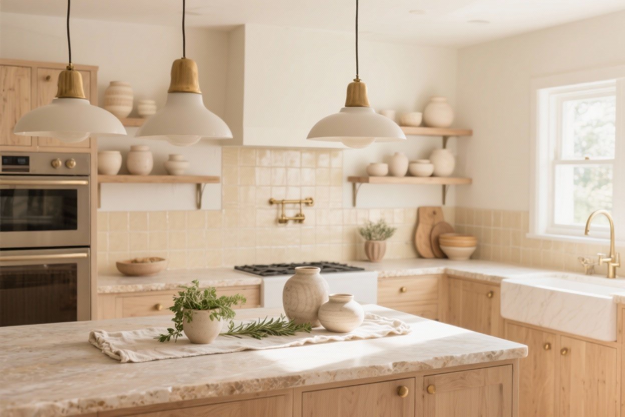 - Backsplash interest: Zellige, handmade tiles, or beadboard for subtle dimension.