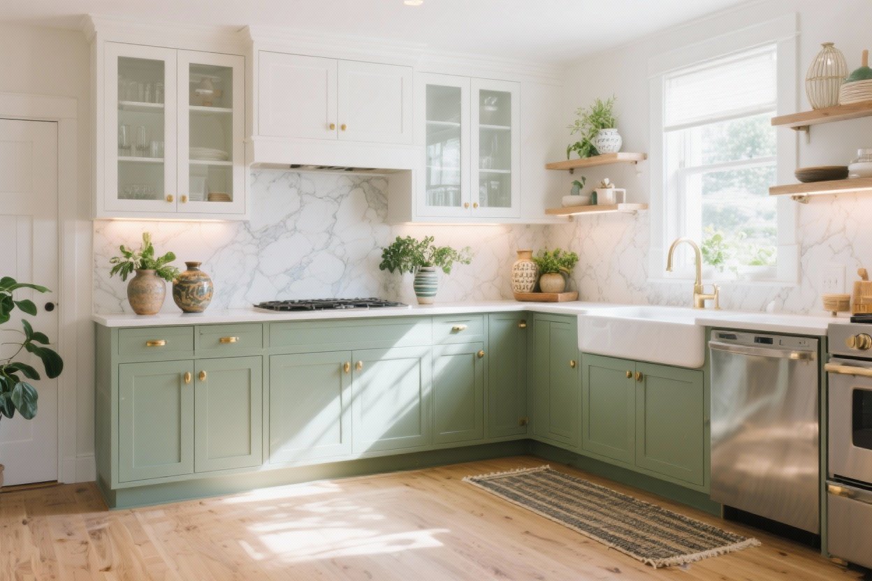 - Two-Tone: Dark lowers, light uppers = instant architectural depth. It’s like contouring for your kitchen.