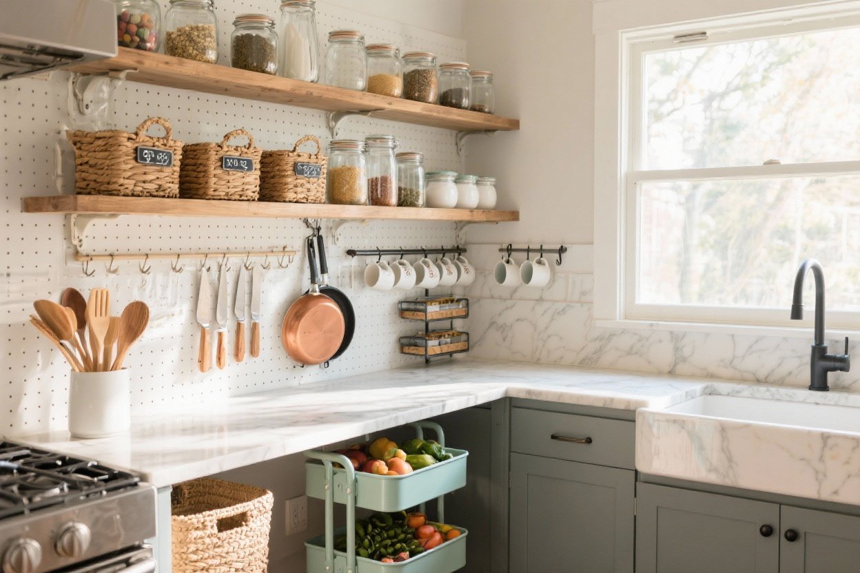You don’t need a renovation to make your kitchen feel bigger and work smarter—just a few strategic tools and a little restraint. Start with one or two ideas, then build from there. Your counters will breathe again, and you’ll actually find the cumin when you need it. Go forth and organize—on a budget and in style.