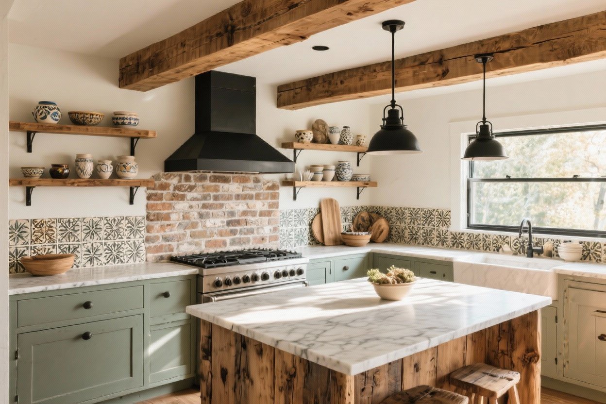 If you want rustic but refined, zellige tile is your secret weapon. These Moroccan, hand-cut tiles show color variation, chips, and waviness—aka personality. They make even a simple kitchen feel special.